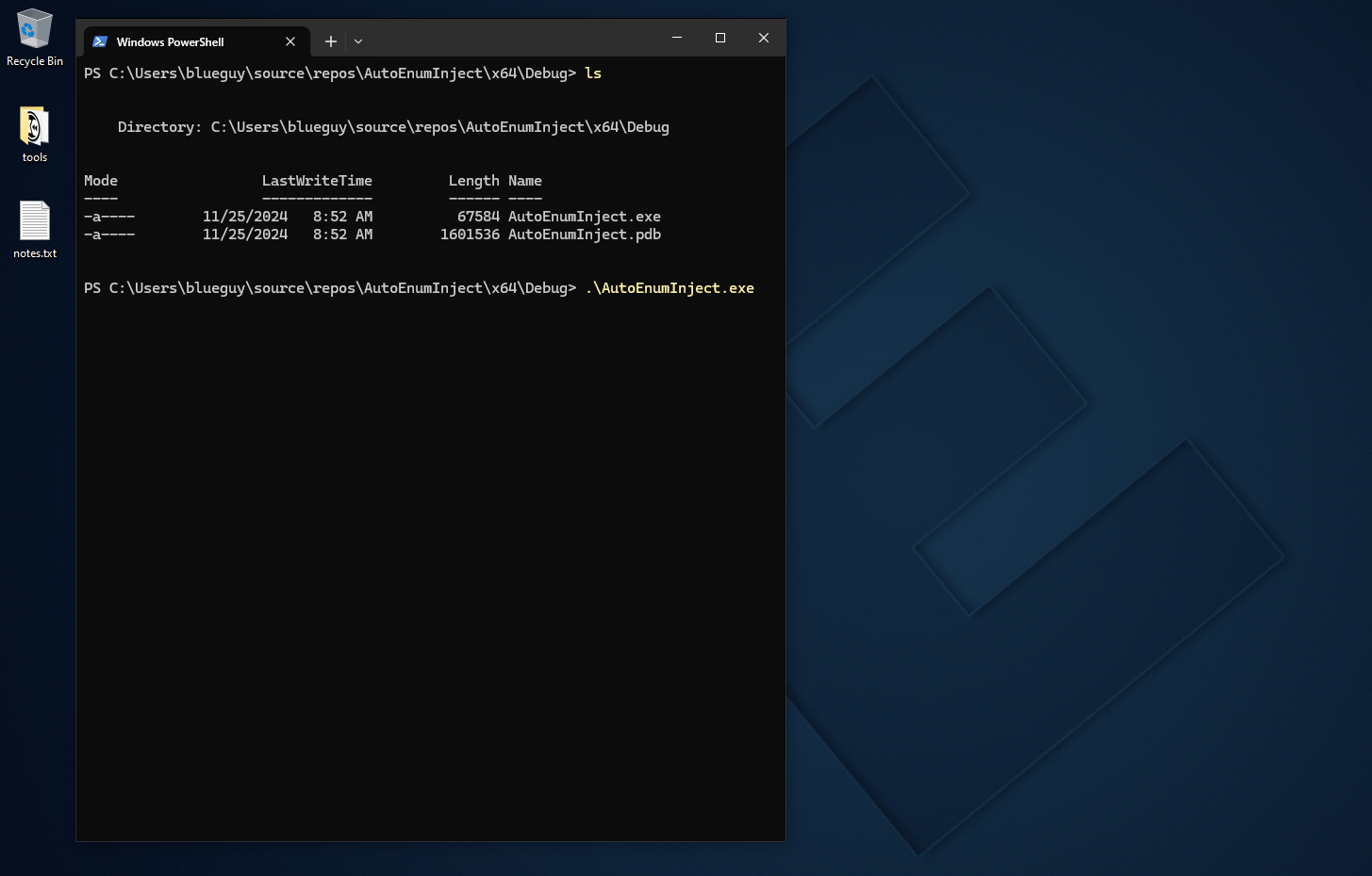 This post is about enumerating processes on a Windows system and finding a target process to inject shellcode into. The program or … “malware”, has two basic functions. GetProcessHandle which will do the process enumeration and open a handle to the first valid process, and InjectShellcode which will inject a simple messagebox payload to the retrieved process handle.